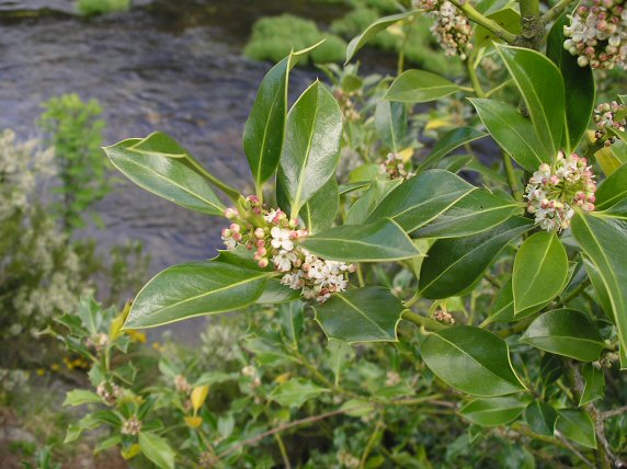 Acebo (mal chamado muérdago, confusión orixinada por ser ambas especies usadas de modo similar. O auténtico muérdago é o Viscum album)