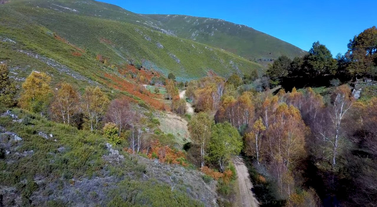 Na fotografía vese como suben polo camiño, hai menos dun km., ata o pueblo de Taboazas. Vedes tamén a situación do pueblo e por onde subimos cara a montaña da dereita para sacar as nosas fotografías, vese un trociño de camiño. Esta fotografía está tamén no video citado.