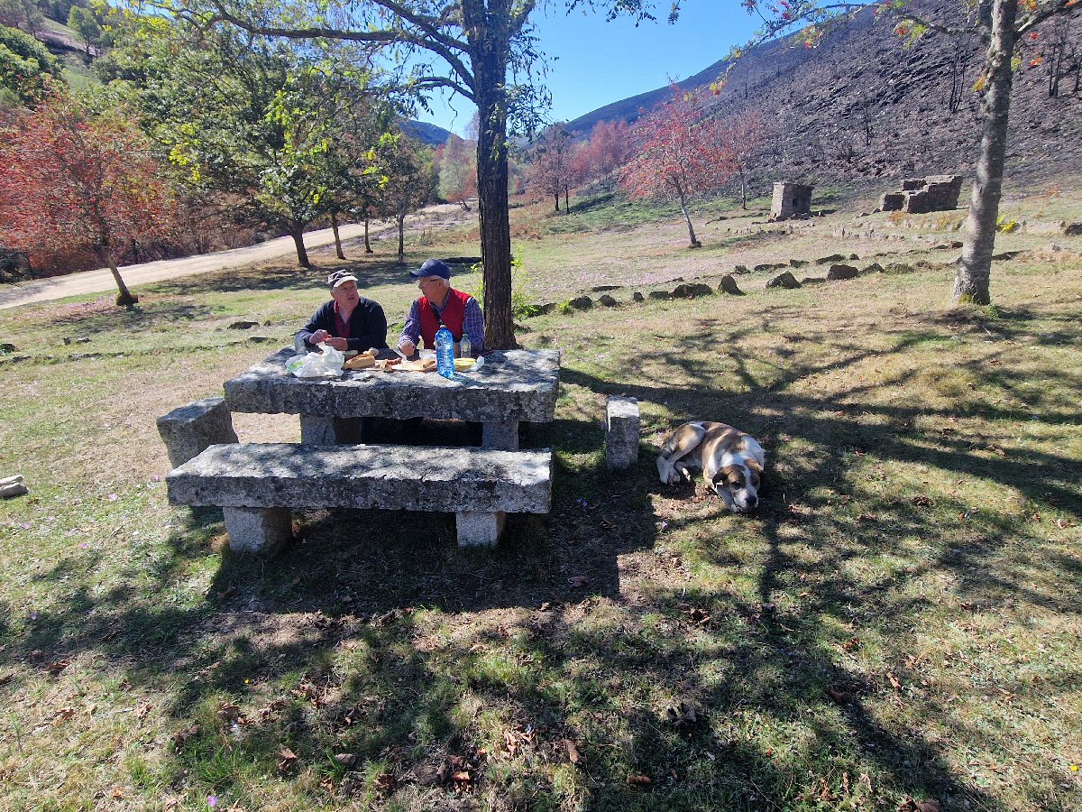Rematamos a xornada comendo unhos chourizos, cun pan de Montederramo, de sete estralos, moi bon, na área recreativa de "O plantio".