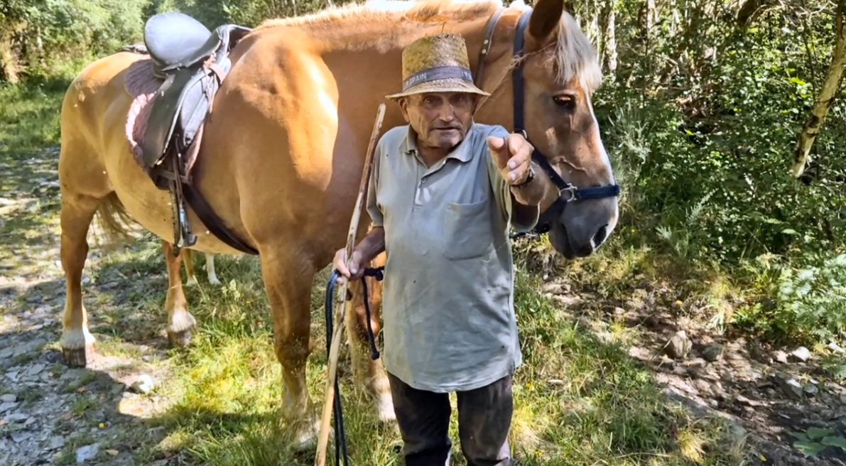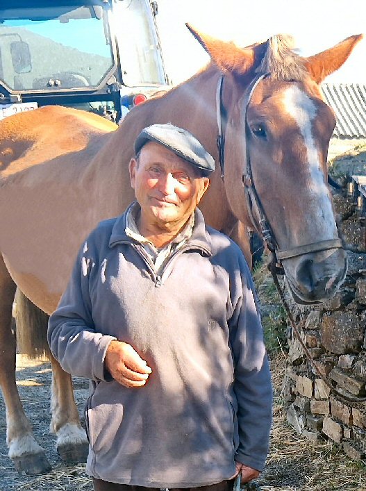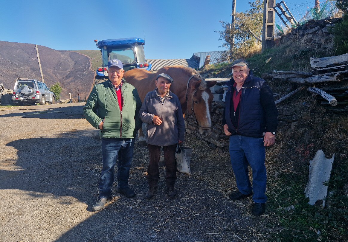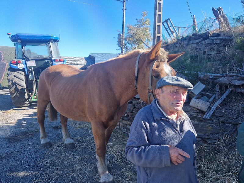 O Sr. Enrique de Taboazas. un home que nos informou todos estos anos de como estaba o río Navea na zona, dos incendios destes anos atrás, 2012, 2024 e 2025 e outras cousas. Na fotografía está coa súa egua que lle permite pasar o río inda que este vaia un pouco alto.