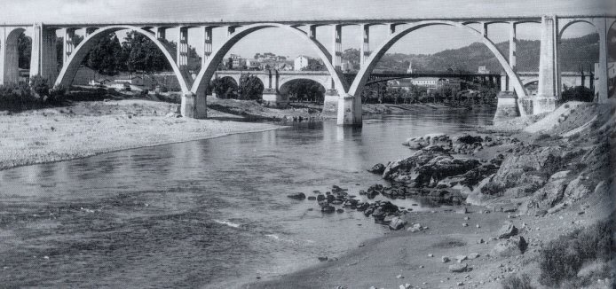 Outra vista do río Miño coa Pena de Francia en primeiro término. É a que está máis preto do viaducto.