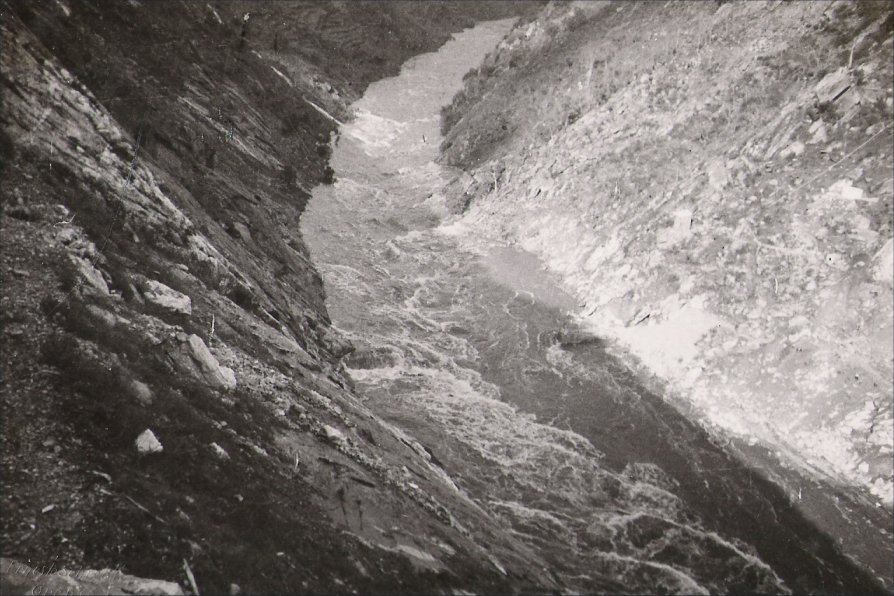 Río Miño xusto onde se fixo a presa dos Peares. Enchenta dos anos 50.