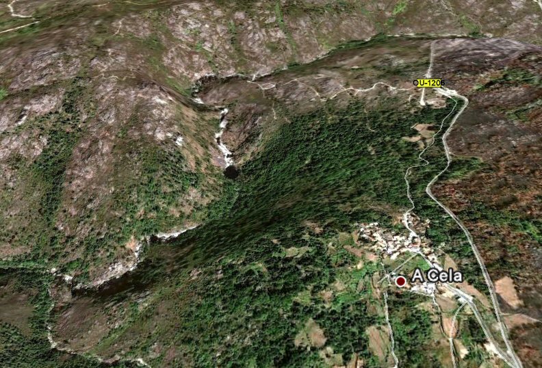 Vista aérea do río Salas. Fervenza da Aguieira.