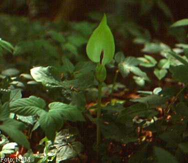 Non ten lugar a dúbidas, as follas semellan lanzas e son moi grandes, poden botar ata 20 cms. O froito é roxo brilante, tamén moi típico. Por certo que é velenoso.