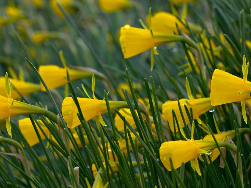 As veces atópasen prados enteiros con narcisos xeralmente da variedade Narcissus bulbocodium.