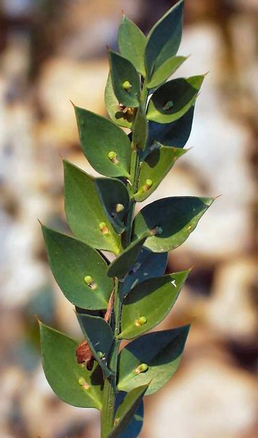 En castelán chámase rusco, brusco, tamén acebo menor e arrayán silvestre.