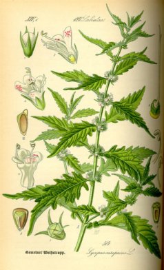 Chámase amenta de Lobo, bugallón, cáñamo de auga, marrubio acuático, pé de lobo, pouta loba entre outros nomes.