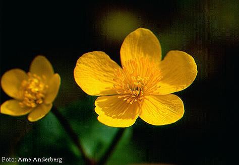 Con 5-8 pétalos amarelos brilantes por riba e moitas veces verdosos por debaixo. Tóxica para o gando. Dase moi ben en lugares húmidos e dende logo a beira dos ríos e nos prados.Chámase en castelán hierba centella ou hierba del rosario.