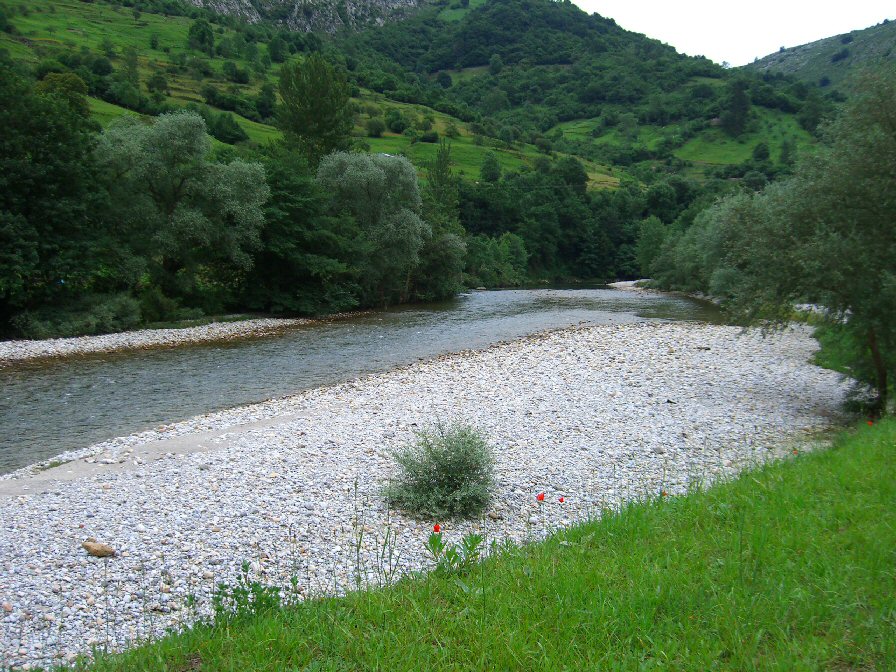 O río Cares, impresionante, da gusto ver esas coios limpos e esa auga verde, e eses salmóns. Tamén ten reos abondosos e por suposto troitas. ¡Que envexa!.
