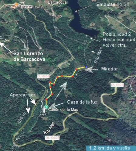 A ruta está perfectamente catalogada. Comenza na Casa da Luz, vai por San Lorenzo de Barxacova, pasa pola tumbas (necrópolis) de San Victor, etc. Pasa por unha ponte medieval, a ponte de Conceliñas, hasta ese lugar chegaba de pesca dende arriba, tamén un mirador, e mais...Utiliza moito o antiguo canal da auga, o que levaba a auga para as turbinas da Casa da Luz. É moi dura, durísima, falo da ruta R4, pero seica é moi recomendable sobre todo a parte final de regreso que é fora de serie e doada de facer...