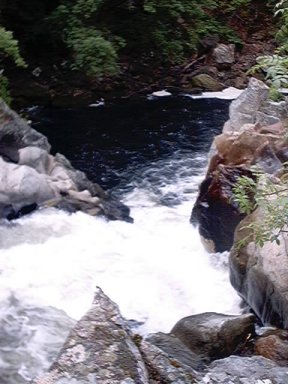 sobre a roca; así fai auténticas caldeiras nas rocas por onde discurre o
