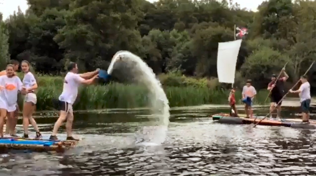 a ocasión, hai de todo, e dúas botándose auga dunhas barcas a outras, ou