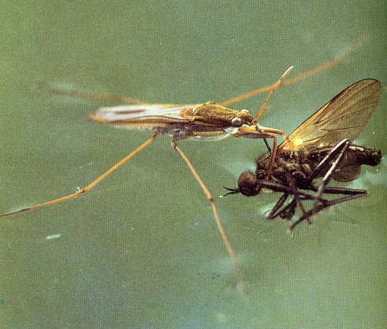 Na fotografía de Frank W. Lane, sensacional, vese cal é o segredo do zapateiro, pero non é doado de explicar: no interior da masa acuática actuan moitas forzas, mediante as cales as moléculas da auga están xuntas. Sin embargo na superficie non todas as forzas actuan dun mismo xeito, esto fai que se formen esas especies de membranas, elástica e que é capaz de soportar pesos de maior densidade que a auga. Esta situación é a que aproveita o zapateiro para poder camiñas pola auga de forma incrible. O seu corpo dende logo axuda moito. De feito trata de apoiar moita superficie das patas, ver a fotografía, ademais posee uns peliños que repelen a auga, toda unha máquina... Realmente o zapateiro rouba a capa da superficie as súas propiedade líquidas, crea realmente unhas depresións na superficie, totalmente visibles na fotografía. O zapateiro non se molla nunca. Os remos reais son as patas do medio, as traseiras son o timón. As de adiante mantenas recollidas o nadar. A súa flotabilidade é total... Por si fora pouco nas patas tamén ten uns organos sensoriais que o teñen o tanto de tódolo que pasa na superficie do río, no seu entorno.